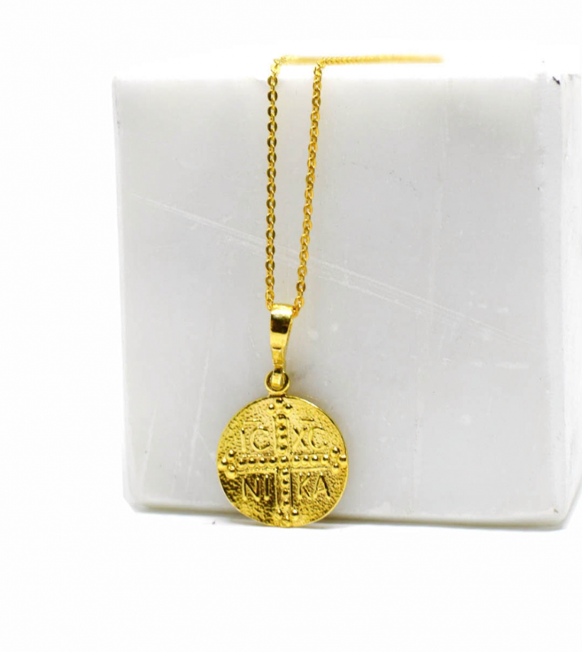 Κολιέ Κωνσταντινάτο επιχρυσωμένο με χρυσό 24 καρατίων, σε ασημένια αλυσίδα 925º.