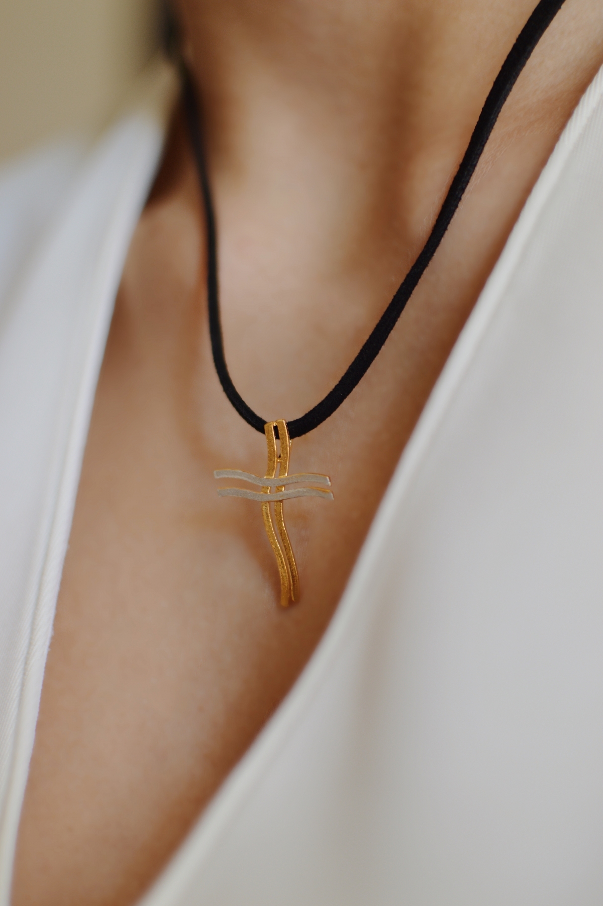 Cross Necklace, Silver 925º with a 24 karat goldplated detail