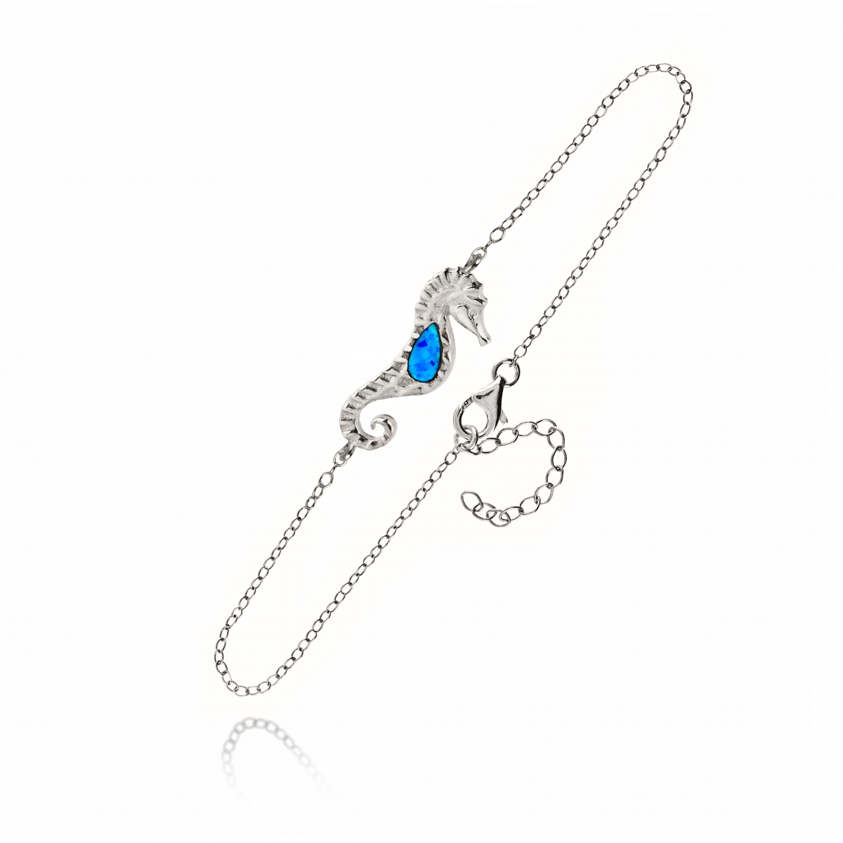 Bracelet seahorse with opal stone in chain made of sterling silver 925